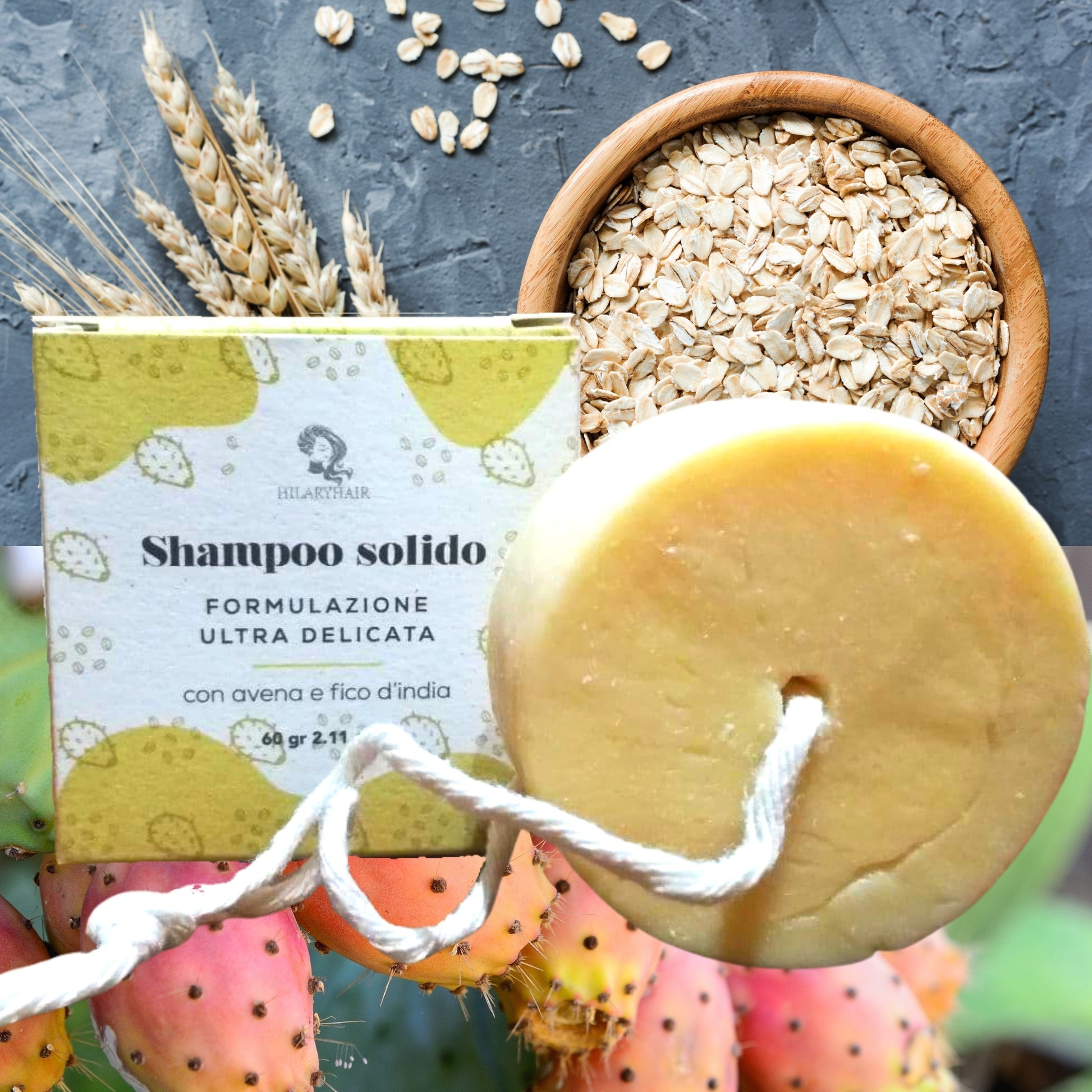 2X Shampoo Solido ULTRA DELICATO - con avena e fico d'india- spedizione GRATIS